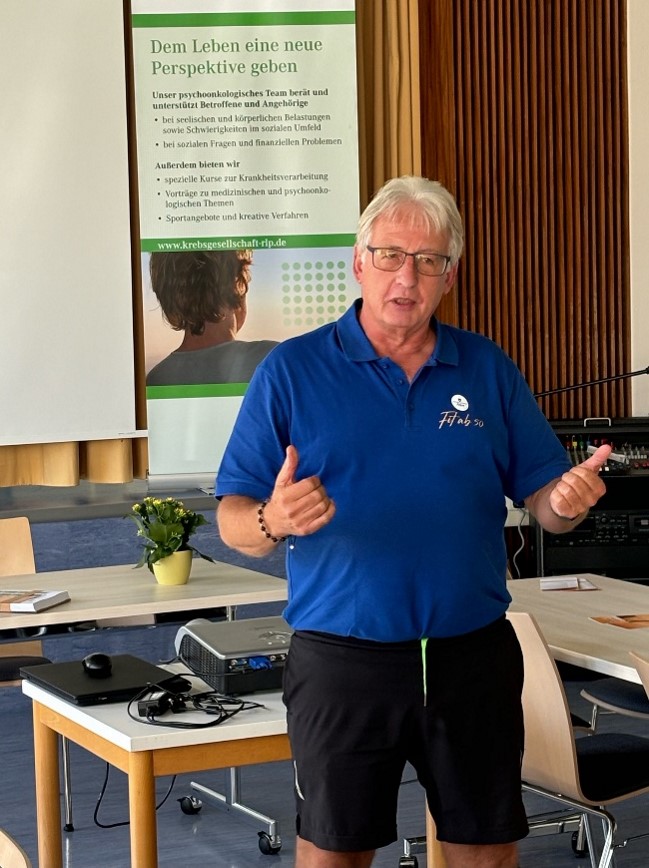 Auf Basis dieses Vertrages führte der Übungsleiter Horst Zinnen einen Workshop zum Thema Sport nach Krebs durch. Nach einer kurzen theoretischen Einweisung folgten einige praktische Übungen, an denen sowohl die Besucher des Patiententages als auch deren Ausrichter mit sehr viel Spaß und Begeisterung teilgenommen haben.