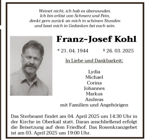 Mit Franz-Josef verlieren wir einen sehr angenehmen Menschen als Vereinskamerad. Unsere Gedanken sind bei seiner Familie.
