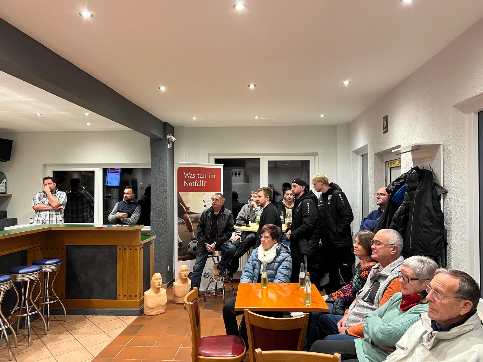 Der SV 1921 Kyllburg e.V. hat sich in den letzten Monaten intensiv mit dem Thema „Lebensretter sein“ beschäftigt und in zwei Defibrillatoren für die Sportstätten investiert. Damit das Thema im Verein transportiert wird, hat der Vorstand am 07.11.2024 den Referenten Glenn Zimmer von der Deutschen Herzstiftung, zusammen mit ca. 20 Multiplikatoren des Vereins ins Vereinshaus eingeladen, um den Umgang mit dem Gerät – aber auch mit Notsituationen allgemein – zu schulen und ebenso die „Angst“ zu nehmen. Es wurden sowohl theoretische als auch praktische Kenntnisse in einem sehr kurzweiligen Vortrag vermittelt.