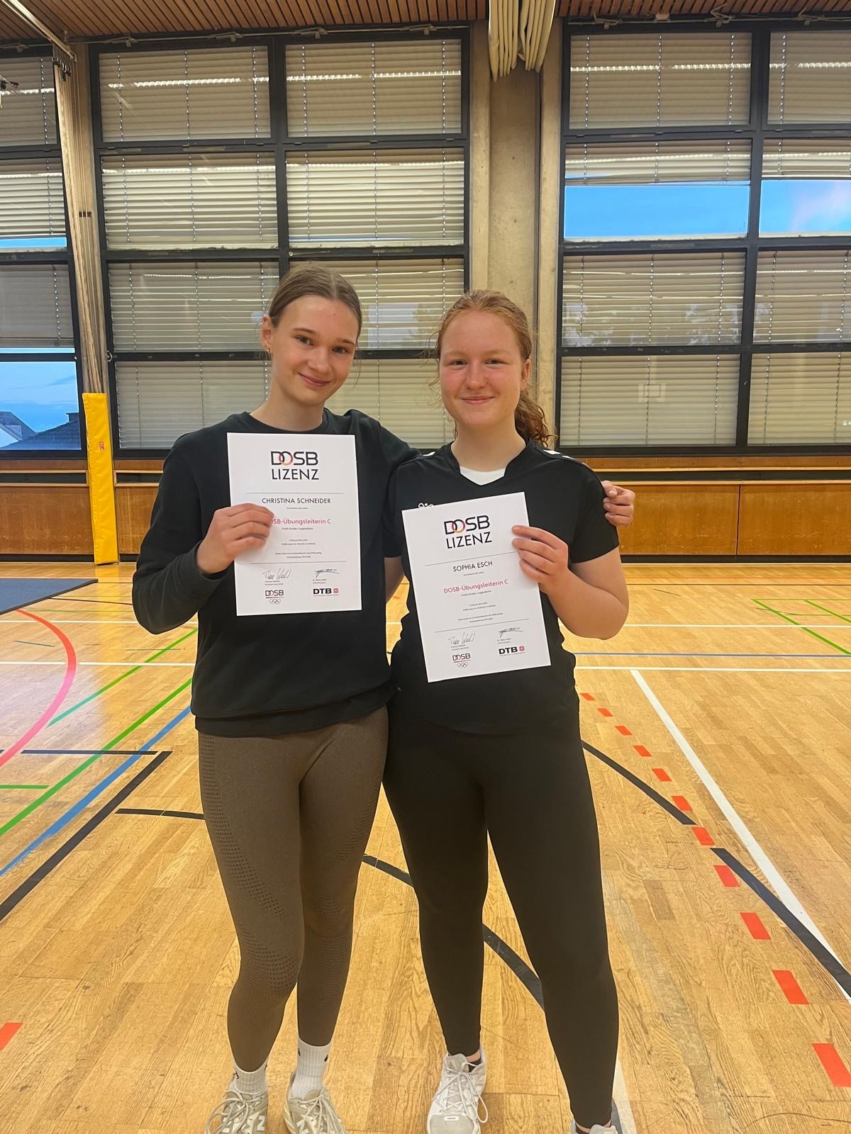 Unsere beiden jungen Übungsleiterinnen Sophia Esch und Christina Schneider haben erfolgreich die Übungsleiter-C-Lizenz bestanden. Die beiden leiten bereits gemeinsam das Kinderturnen für Vor- und Grundschulkinder ab 6 Jahren. Das Training findet Freitags von 16:00 bis 17:00 Uhr in 2 Gruppen statt. Nach mehreren Wochen Ausbildung und intensiver Vorbereitung auf die theoretische und praktische Prüfung dürfen sich beide nun offiziell Übungsleiter im Breitensport nennen. Besonders erfreulich: Beide bleiben ihrer bisherigen Trainingsgruppe erhalten und können dort ihr neu erworbenes Wissen und viele frische Ideen direkt in die Praxis umsetzen.